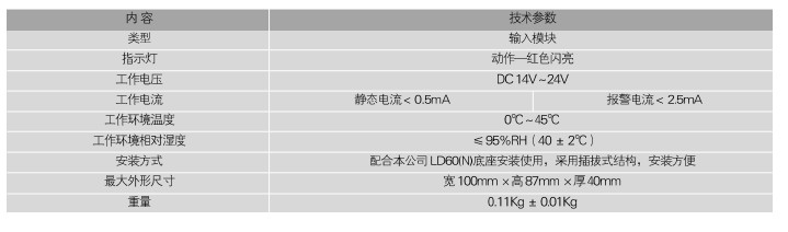 二、利達LD4400EN-2輸入模塊主要技術指標